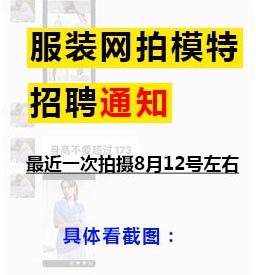 服裝網(wǎng)拍模特招聘通知,最近一次拍攝8月12號(hào)左右